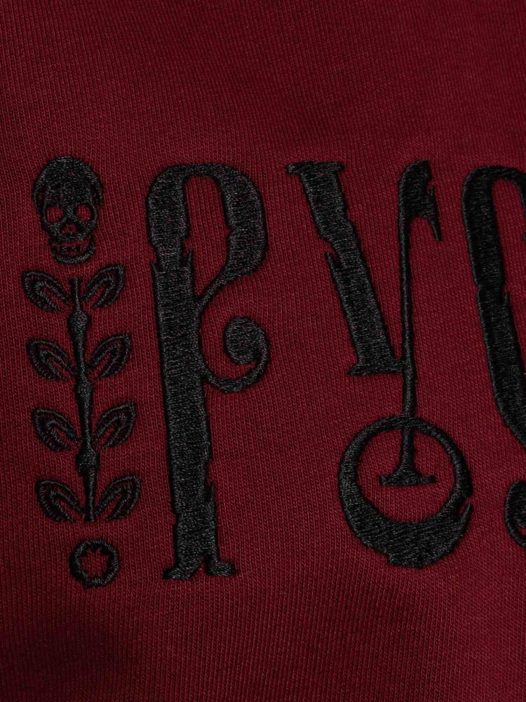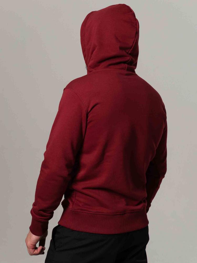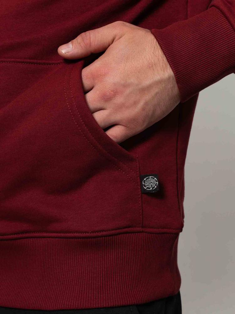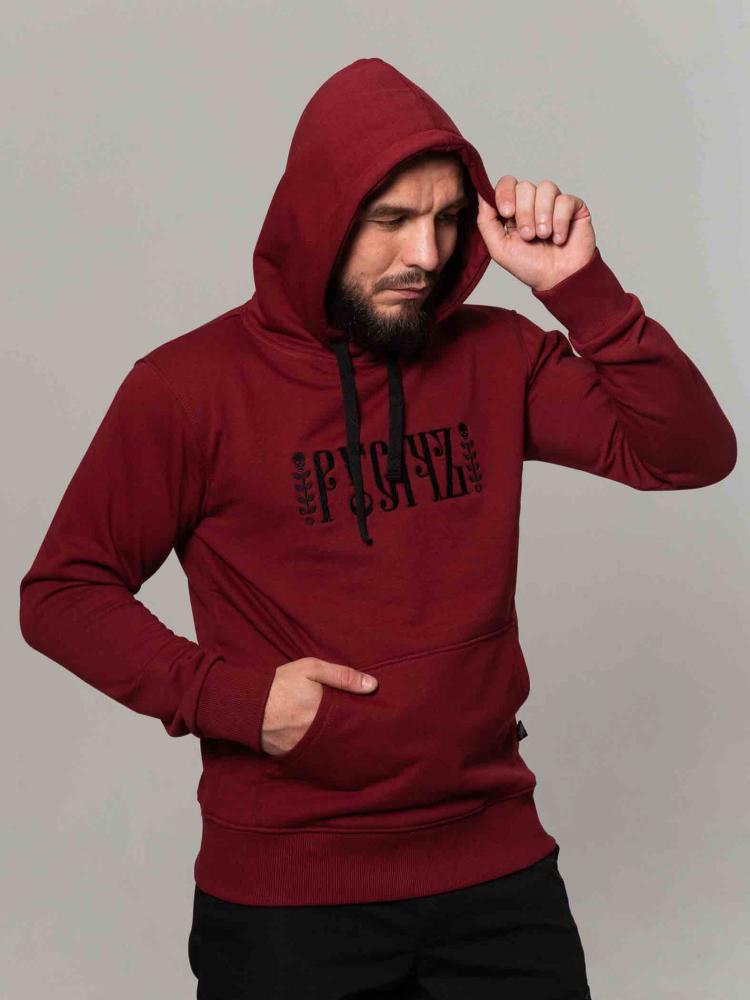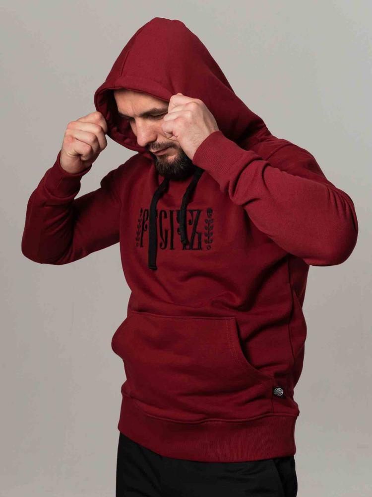 Классический худи тёмно-бордового цвета с большой вышивкой «Русичъ» на груди.