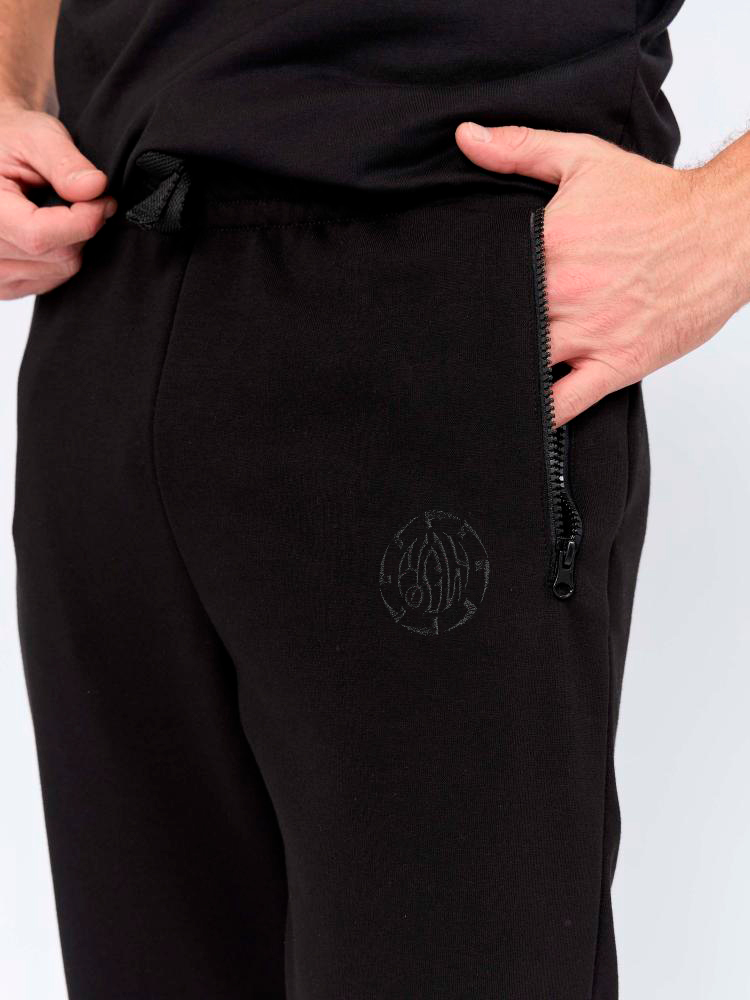 Прямой свободный крой с резинкой-манжетой, слегка зауженный к низу силуэт;