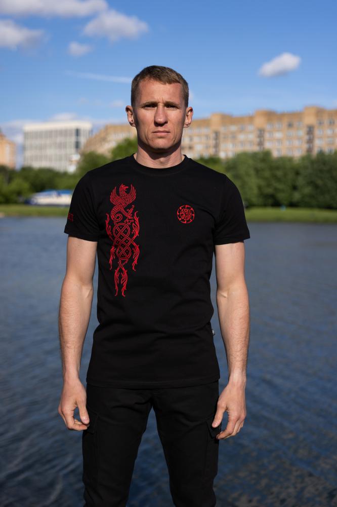 Мужская классическая футболка «Русич-Симаргл» из коллекции – Оберег, чёрный цвет.