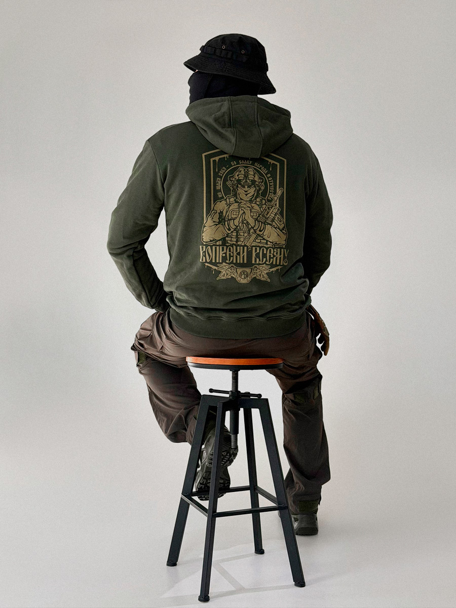 Мужская толстовка худи с капюшоном и объемным карманом-кенгуру из высококачественного хлопкового футера. Манжеты и пояс оформлены мягкой трикотажной резинкой. Печать изображения европейскими водными красками, вытравлением в ткань, принт не ощущается на ощупь, и не потрескается после стирки. Толстовка создана для тех, кто предпочитает комфорт и ведет активный образ жизни.